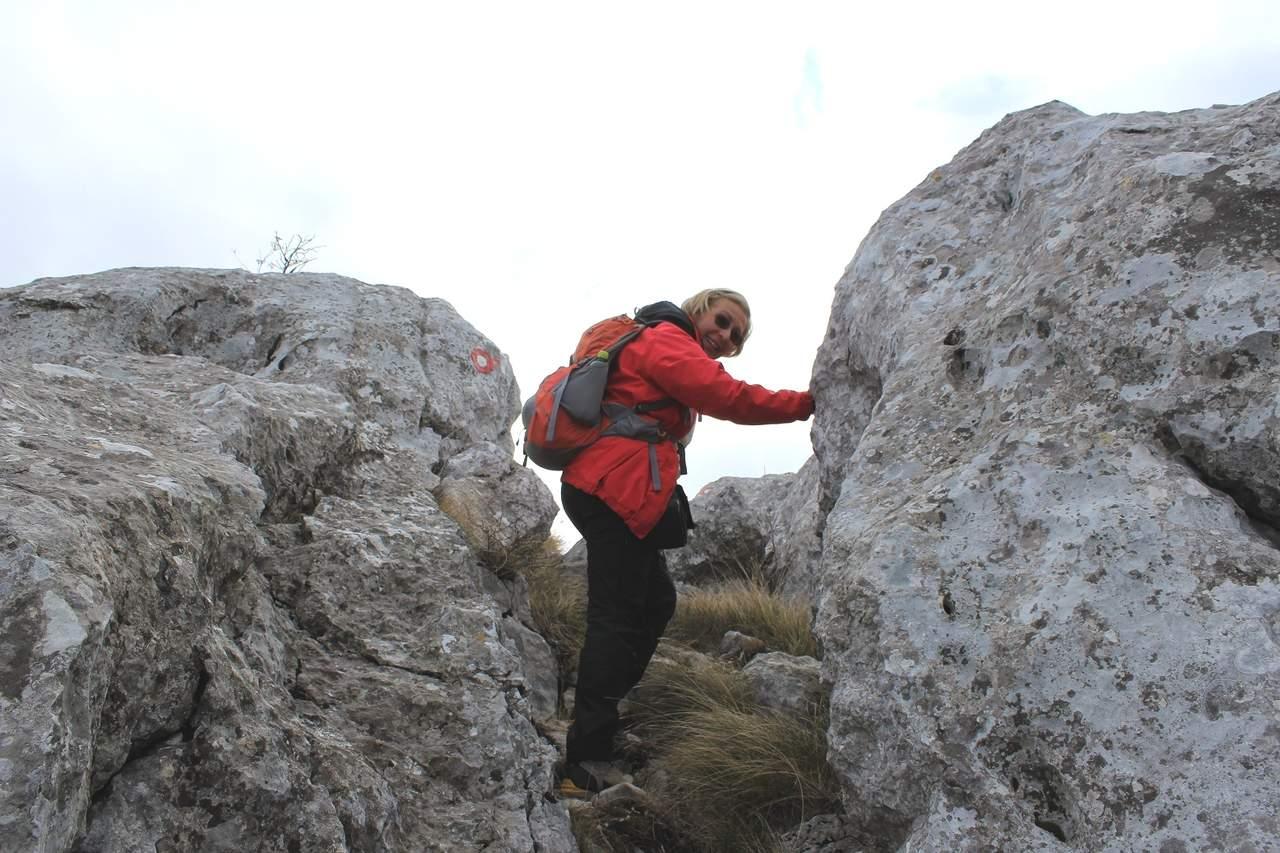 10. Vickov stup, 1325 m 11. Krećemo prema Velikom Kabalu, najvišem vrhu Mosora. U daljini se vidi Kozik 12. Ima penjanja i...